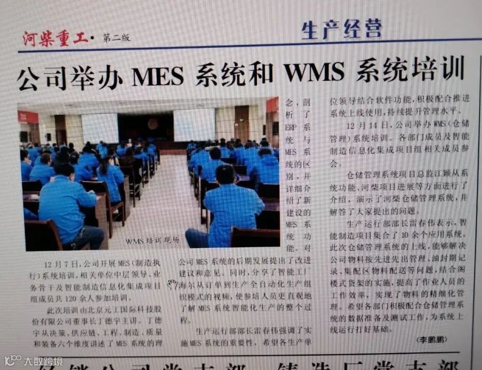 项目经理马仲凯等实施人员在河柴重工各部门人员的大力协助下,依据技术规格书、技术协议和设计方案的功能要求,完成了工艺管理、物料管理、生产计划管理、生产计划排产管理、生产计划调度管理、生产过程管理、车间物流管理、产品追溯管理、车间设备管理、工具工装管理、看板管理、集成接口等模块的实施。共开发部署120多个功能页面,70个接口,处理功能问题和业务优化项385 项。