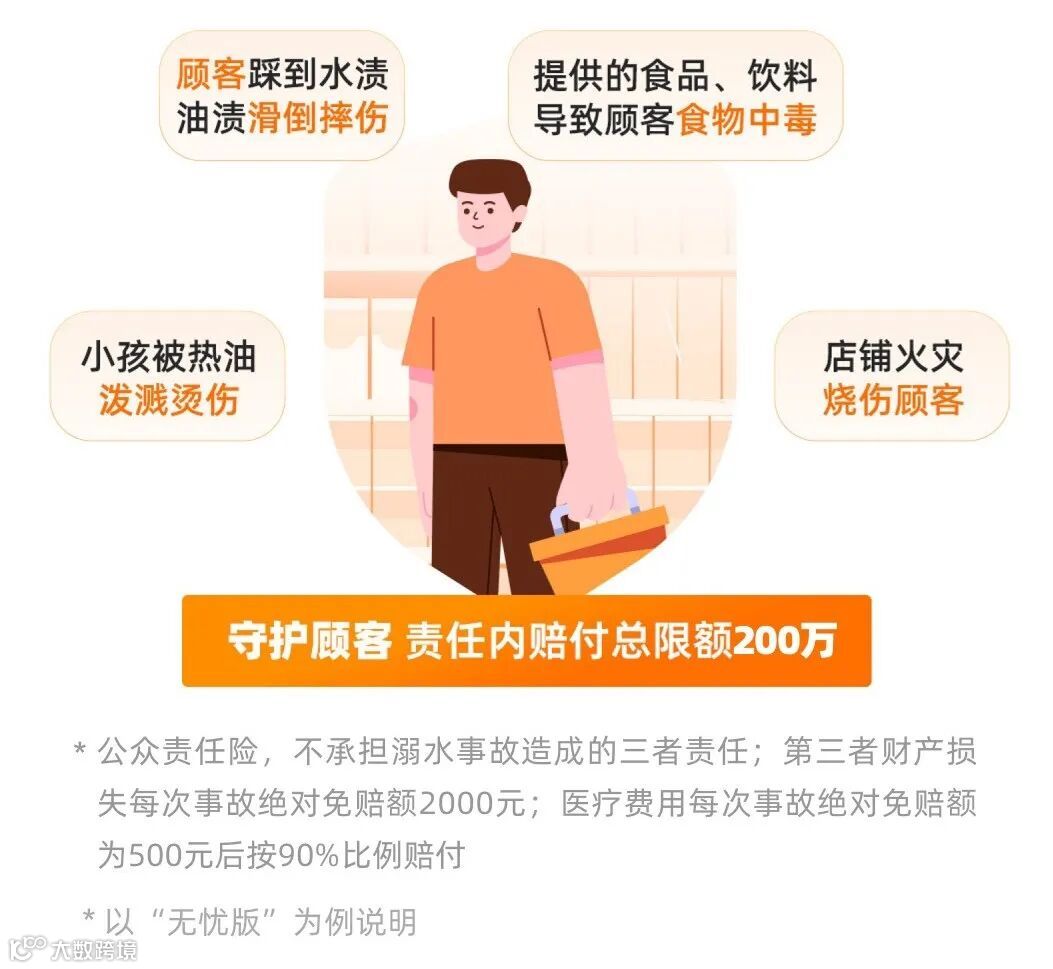 保障顾客在店内发生意外事故,意外受伤和财产损失。比如顾客踩到水渍、油渍滑倒摔伤、食物中毒等等;