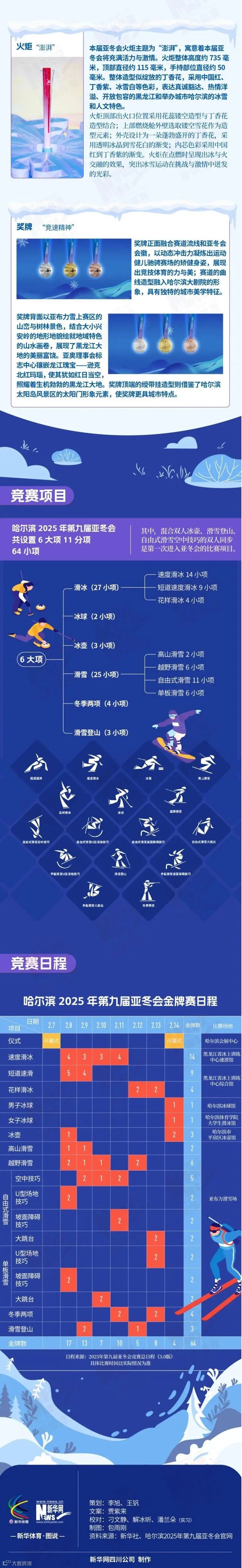 2025年第九届亚洲冬季运动会将于2月7日在哈尔滨拉开帷幕。本届亚冬会是继北京冬奥会后我国举办的又一重大综合性国际冰雪运动盛会,也是自1996年后哈尔滨第二次承办亚冬会。赛场内外都有哪些中国元素?将进行哪些项目?赛事日程又是如何安排的?让我们一起来了解下吧!