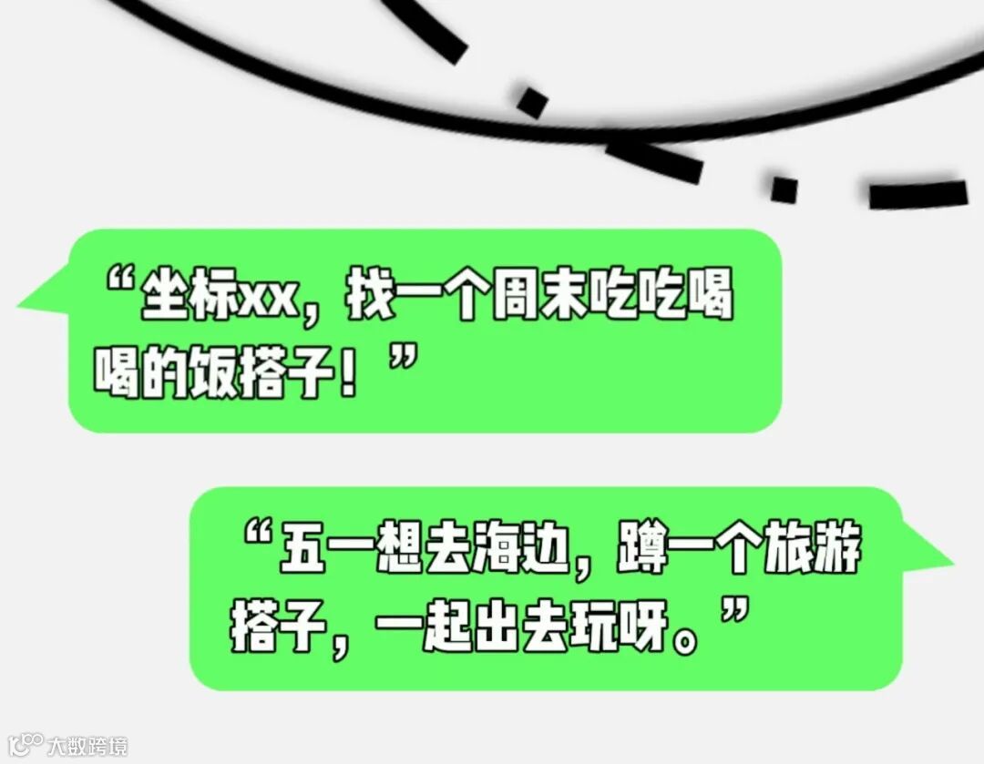 “搭子”,是一种新型社交关系,指的是因某一种共同的兴趣、爱好或需求而结合的社交关系,不如朋友般关系密切,却能在特定的垂直细分领域里提供精准陪伴。从“饭搭子”、“游戏搭子”到“旅游搭子”,只要有需求,万物皆可搭。