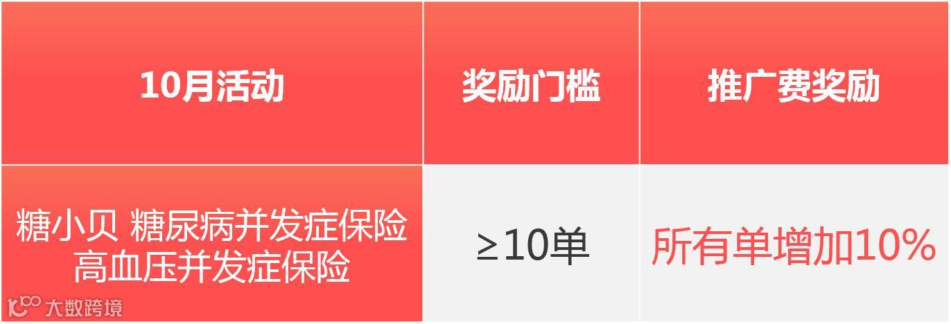 农历九月九是中国传统的重阳敬老节,敬老是中华民族的传统美德。老年人也是糖尿病和高血压的高发人群,为了促进全国老年人的糖尿病和高血压并发症的保障,10月众推广商户推广两类产品都可以获得高额奖励。