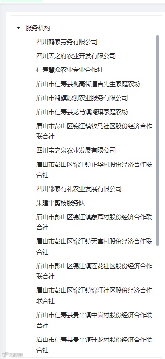 新眉农服平台还可向农户提供多种服务,比如用工报名、职业培训等。辅助服务机构通过“新眉农服”平台组织人员开展服务,目前新区已遴选20多家服务主体进驻平台,各机构通过线上服务大厅发布200多项服务类目,直接面向农户,扩大服务半径。