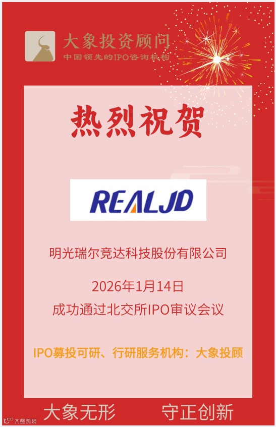 2026年1月14日,大象投顾客户——明光瑞尔竞达科技股份有限公司顺利通过北京证券交易所上市委员会审议会议。