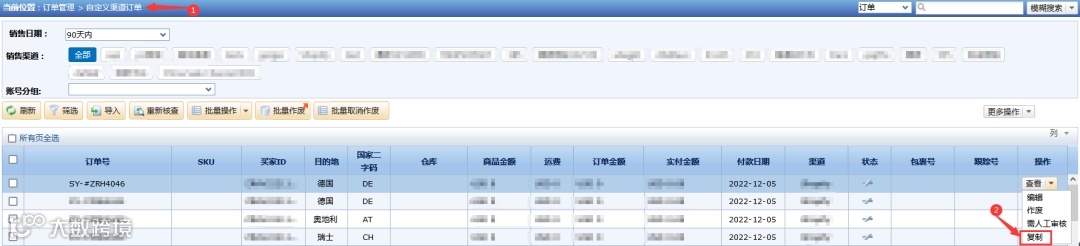 支持订单复制功能(子账号需开通权限),复制后订单状态为「未付款」,无付款信息。