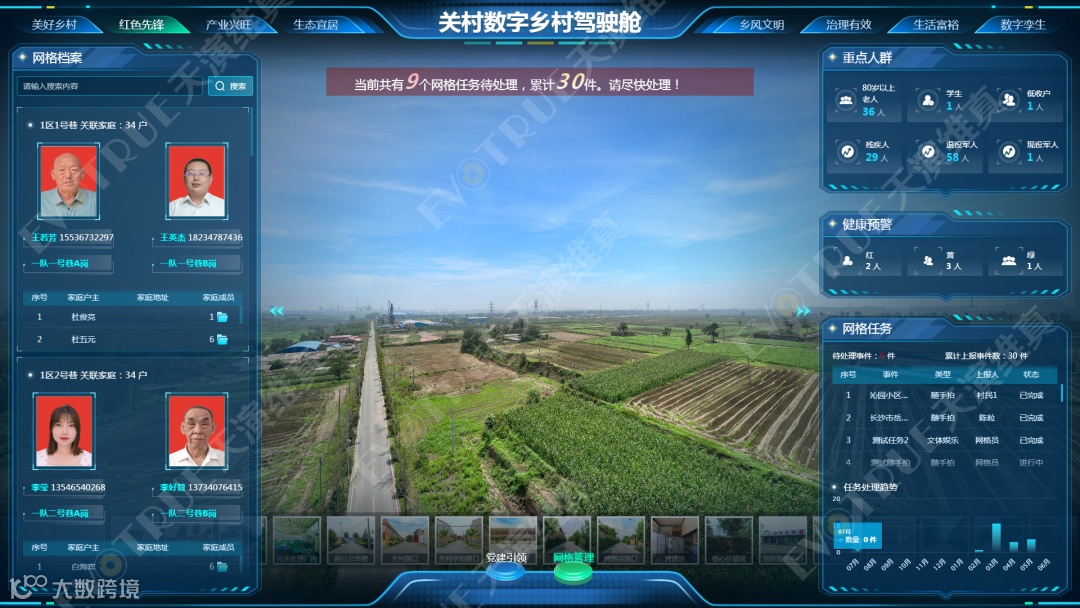 在平安乡村上,实现监控设施全覆盖,依托AI视频24小时全天候动态监控,对村内纠纷、重点房屋进行管控、实时上报和即时处置,实现2022年违法犯罪案件为0。同时构建村民电子健康档案,实行网格化管理,定期针对性的对村里老人、儿童、慢病伤残等重点群体进行监护,守护村民健康,提升幸福感。在环境卫生上,一方面实施网格化管理,一方面通过“天眼”全天候紧“盯”,哪里随意丢弃垃圾,哪里折毁花草,哪里点火冒烟,摄像头实时传输,村委及时通知网格员清扫处理;在乡风文明上,用手机客户端推送“五好家庭”、“最美媳妇”、“最美婆婆”等身边文明小事,推进新乡风新文明新治理。