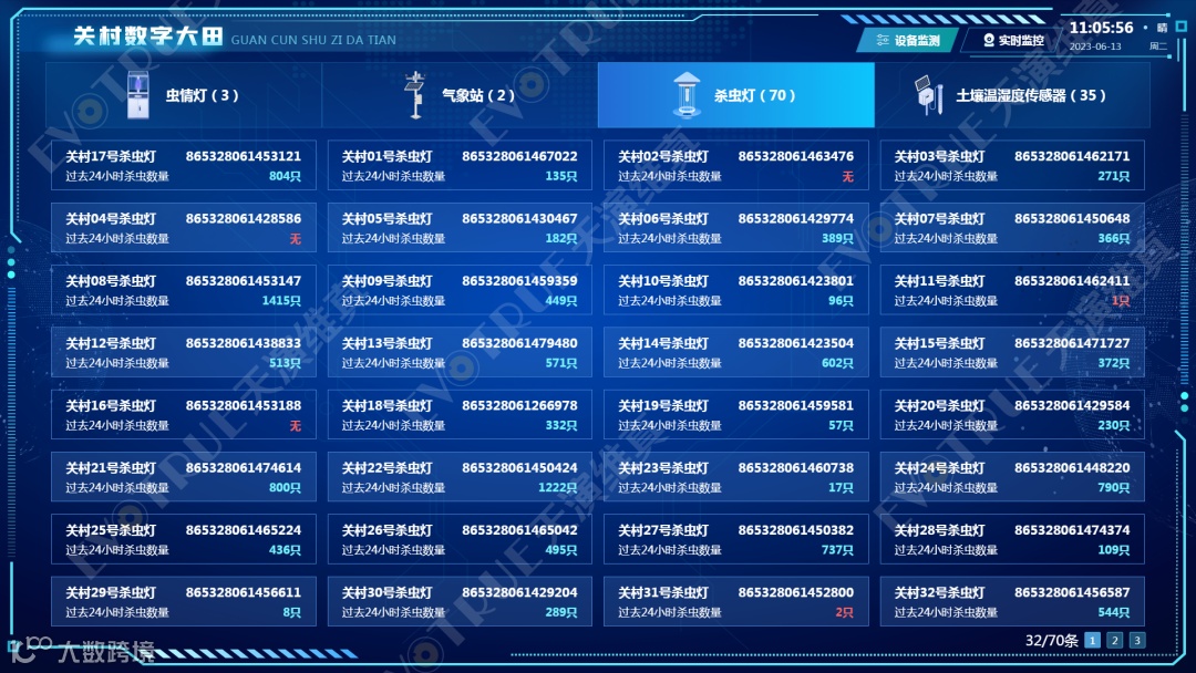 “我们给全村栽种的3500亩大田,安装了2个气象观测站、35个土壤墒情监测站、70个物联网虫情预警及杀虫灯,35个360度旋转高清摄像头,这就是我们的‘数字大田’,也就是用科技帮我们搞好生产!”村委会管理人员说道。