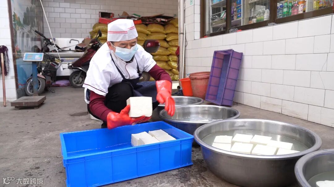在关村,像这样的作坊有十多家,包含饼子、羊汤、豆腐干、蒸馍、八大碗、糕点等不同种类。