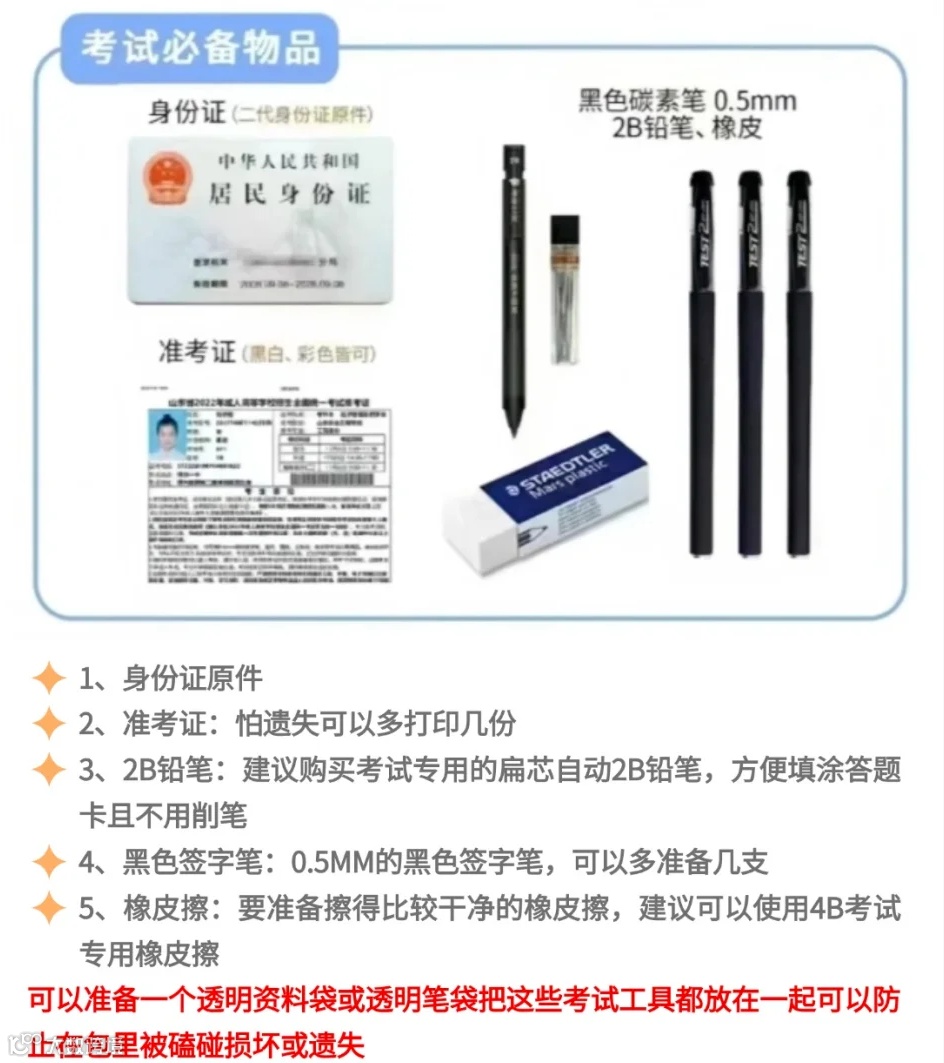 特殊工具:部分课程可携带无存储功能的计算器(以准考证标注为准),作图类科目可备三角板、圆规。