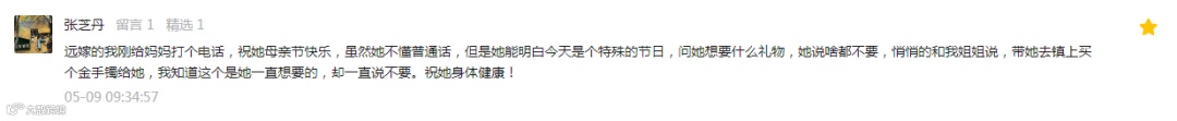 远嫁的我刚给妈妈打个电话,祝她母亲节快乐,虽然她不懂普通话,但是她能明白今天是个特殊的节日,问她想要什么礼物,她说啥都不要,悄悄的和我姐姐说,带她去镇上买个金手镯给她,我知道这个是她一直想要的,却一直说不要。祝她身体健康!