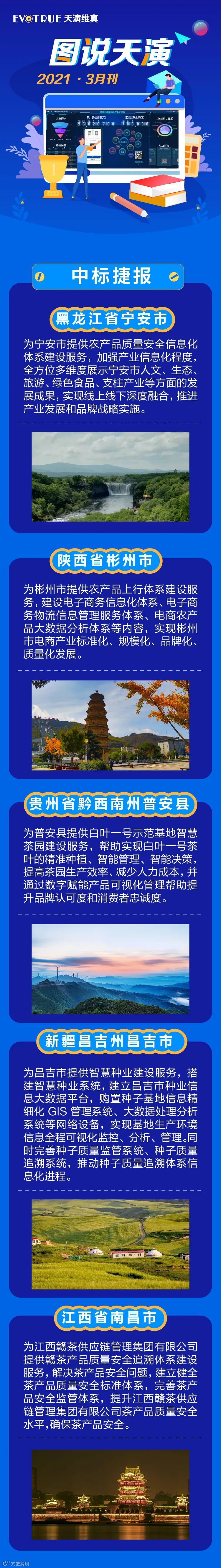 阳春三月,万物复苏。本月天演维真也迎来了诸多喜讯,中标捷报不断传来的同时,产品也在迭代升级,助力各地产业发展、乡村振兴。