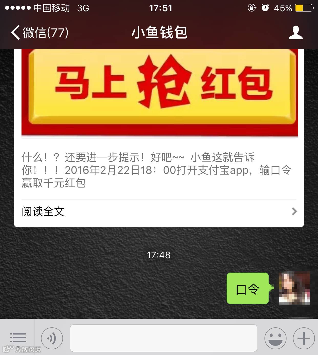 1.在小鱼钱包官方微信平台(即本微信)发送文字“口令”即可直接得到红包口令!