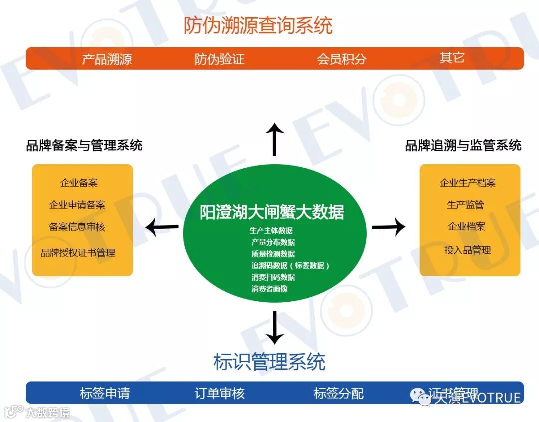 在阳澄湖大闸蟹防伪追溯体系建设中,天演维真主要从防伪追溯管理流程梳理和信息化业务支撑平台搭建两方面进行建设。