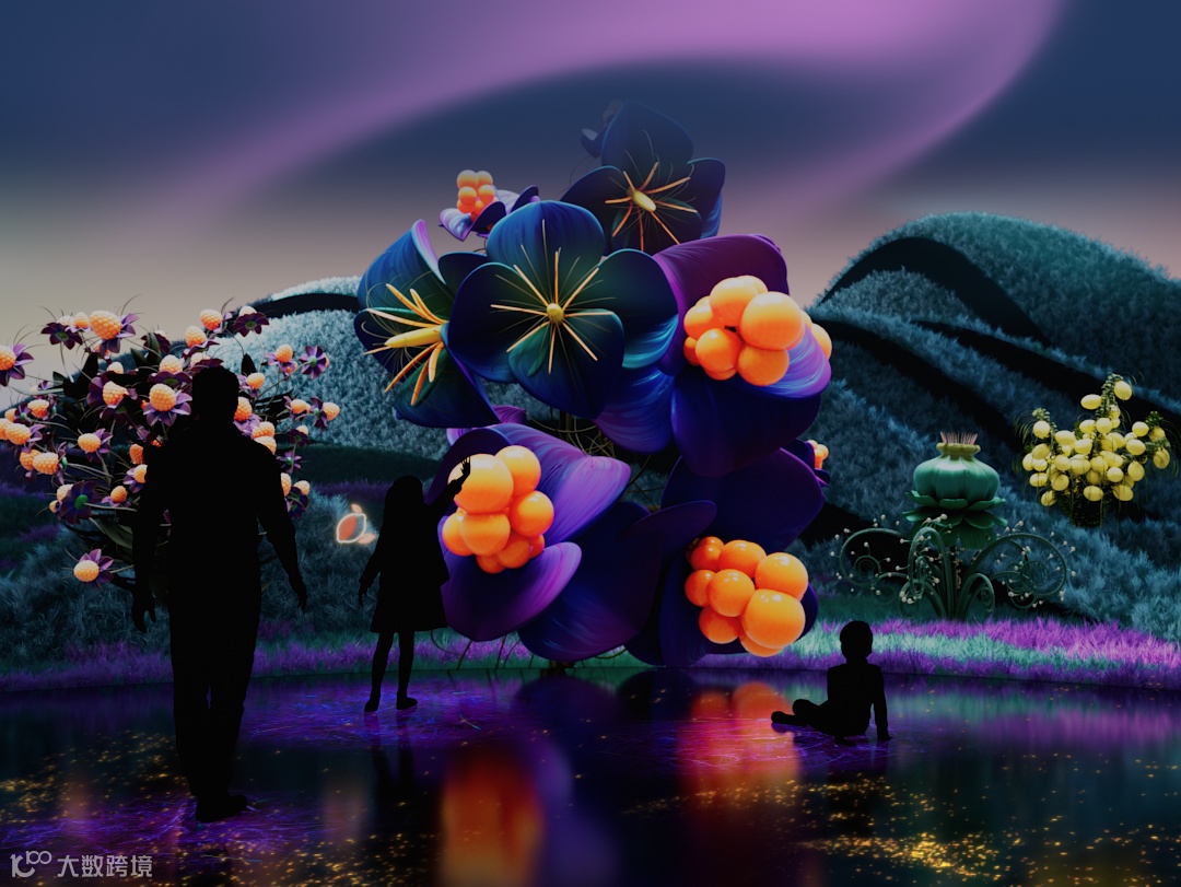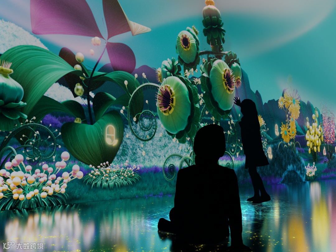 为了实现这个效果,乌托邦花园除了采用完全环绕的动态声音设计,以及360°数字艺术视觉,更是结合自然、科学学科内容,将现场观众交互动作,融入了画面效果,确保游客在现场的一举一动、耳听眼观,都能与展出画面产生互动,并影响到展出最终的视觉效果。