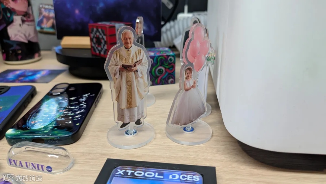 xTool展示一款面向创意工作者的UV打印机,可在木材、塑料、玻璃、金属等硬质材料上实现全彩、高精度、带立体纹理的图像输出。UV树脂层赋予画面类似丙烯画的厚重质感,突破传统平面印刷边界。