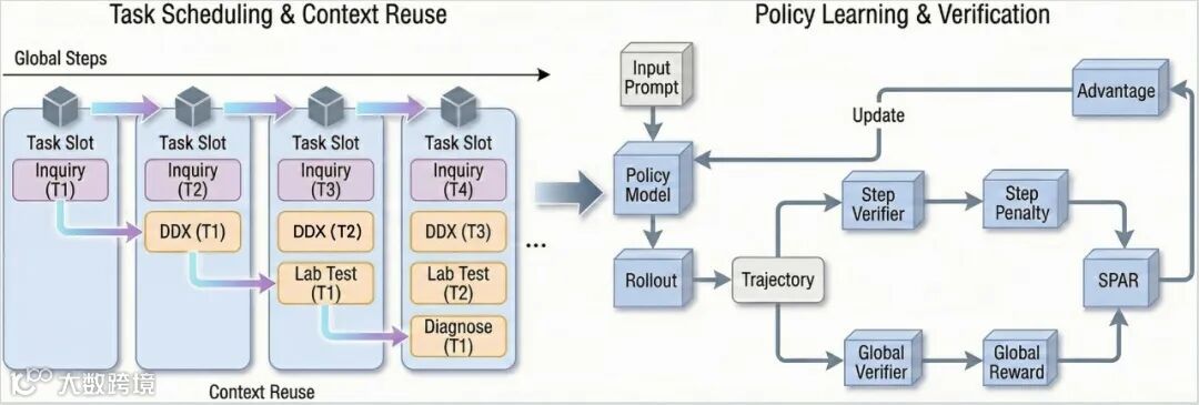 其奖励模型还融合医学教育中的OSCE(客观结构化临床考试)理念,以可计算的动态量表进行全过程考核,不仅关注结论正误,更评估每一步的逻辑性与安全性。