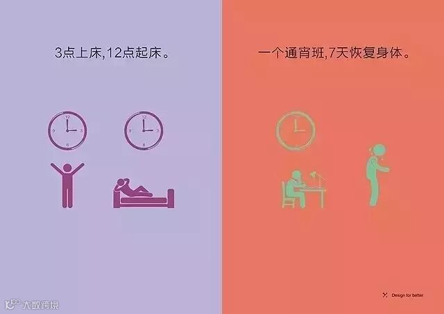普通设计师3点上床,12点起床。优秀设计师加一个通宵班,可能要一个礼拜恢复身体。(好吧,虽然年纪大了经验丰富了,可是体力一定不如咱小鲜肉好。)