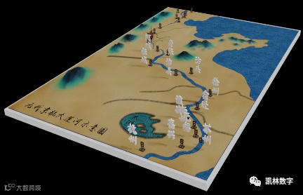 利用三维地形生成的沙盘模型以及动画形式相结合,更具象的去展示这一段历史,也着重标注北京与大运河文化带的关系。