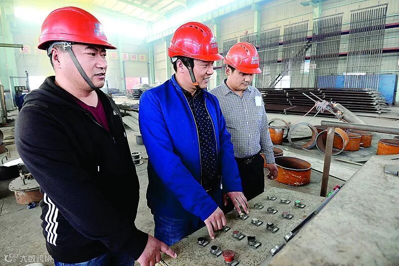 图为工人们正在调试设备