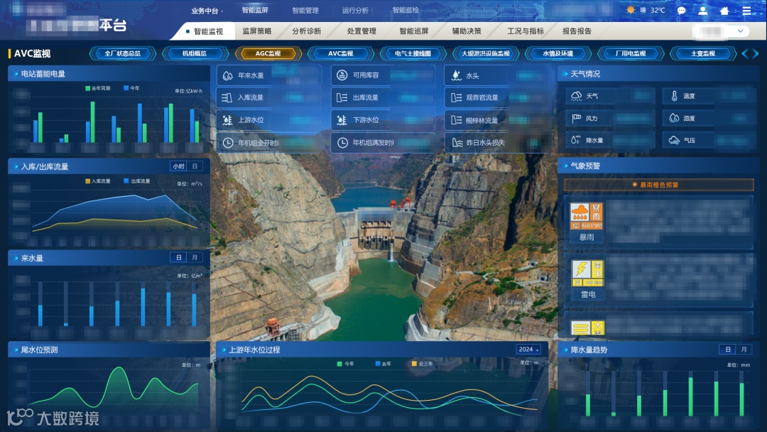 基于CyberwIIOS的智慧水电解决方案,中能拾贝通过对水电站运行、水资源管理和能源调度的全面优化,实现水电站的智能化、自动化和高效化运营。该方案不仅是水电行业数字化转型的核心,也是提升水电站整体运营效率和能源利用率的关键手段。