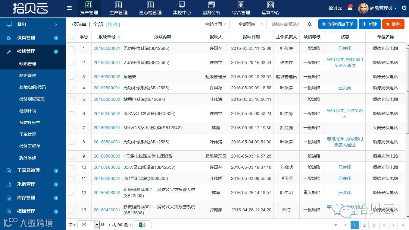 2016年5月23日,健新科技拾贝云(www.10byun.com)大型企业级互联网平台产品组组织召开了拾贝云V1.5版本功能建设评审会,会议由拾贝云总负责人谢莫锋主持,相关产品研发人员、运营人员和项目一线人员等参加了评审。拾贝云开发经理金文文、拾贝云官网产品经理汪承武、设备管理(设备|检修)产品经理张润辉、运行物资(值班|运行台帐|两票|巡检|预算|采购|库存)产品经理林顺海、综合管理(安监|工器具|检修项目|光伏集控)产品经理李朝、拾贝云APP产品经理周宇分别介绍了各子板块研发进展情况,综合来看研发进度和质量都不错,预计2016年6月20日左右正式发布拾贝云V1.5版本。