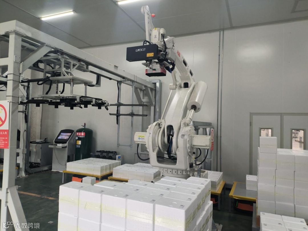 基于AI+3D视觉和机器人技术的智能拆码垛系统攻克了行业技术难点,自主研发工业相机,结合自主研发算法成功实现集点云获取、点云识别与分割、抓取规划、运动规划、码垛剩余空间规划等各方面功能于一体;具备连续拆码垛、混合物品拆码垛等功能。混合拆垛、码垛准确率≥99%,混合拆垛效率≥500次/h,混合码垛效率≥400次/h,技术指标达国际先进水平,填补了国内在高动态复杂场景下智能拆码垛的技术空白,获得了2022年度浙江省制造业首台(套)装备认定。