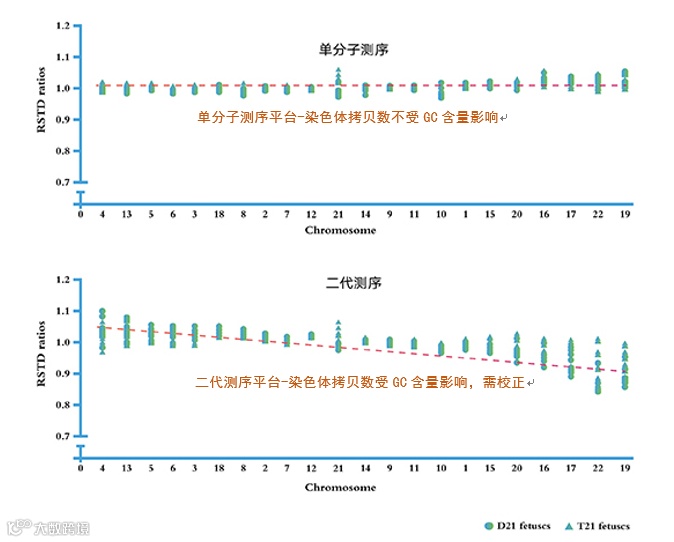 技术局限性源于:现行基于NGS技术的NIPT都需要经过PCR扩增,而不同染色体基因组不同区域存在GC含量的差别,因此PCR的过程会不可避免地引入扩增偏差,导致测序结果存在偏差,从而影响检测结果的准确性。