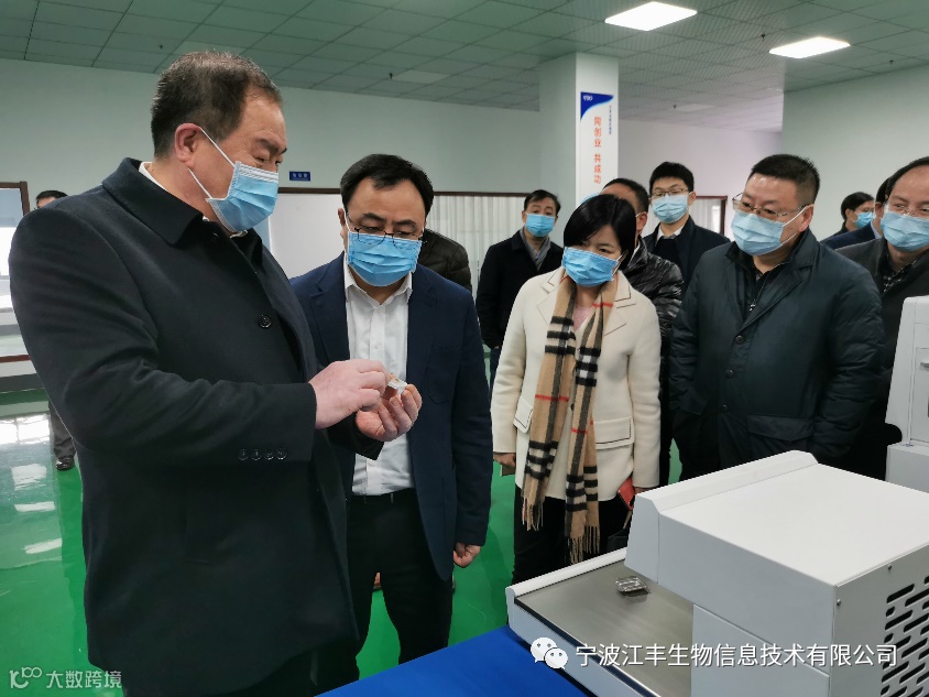 徐云一行来到江丰生物后,听介绍、进车间、看产品,赞成绩、指不足。每到一处,徐云都认真听取公司董事长刘炳宪先生的相关介绍,详细了解公司的发展现状、核心技术、应用场景、市场前景等情况,并关切询问公司发展中存在的困难与需求。针对我司提出的场地支持、业务渠道拓展等问题,徐云现场办公,一一作出回应,并落实相关部门进行对接。徐云强调,新年新气象,新年新发展。在新的一年里,广大企业家要继续强化创新驱动,通过智能化改造,进一步提升产品核心竞争力,以数字赋能、科技赋能助力企业做精做专,不断壮大规模能级;要加大人才引入,加强与专业机构、行业权威部门、科研院所的技术合作和成果共享,进一步整合资源、做深做透,共同攻克技术难题,提升市场竞争力,实现高质量发展。
