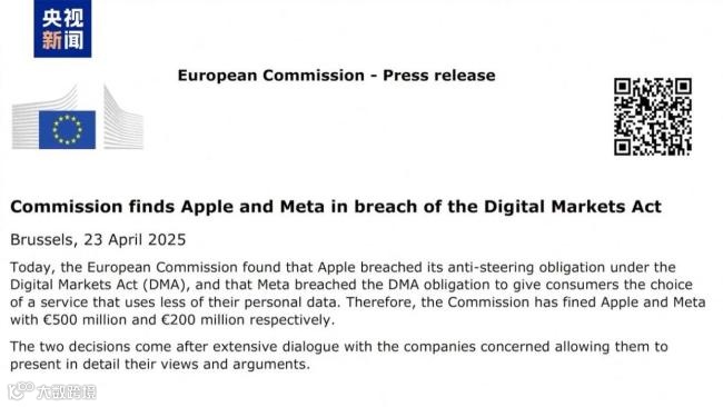 欧盟罚单:苹果、元宇宙平台公司受罚