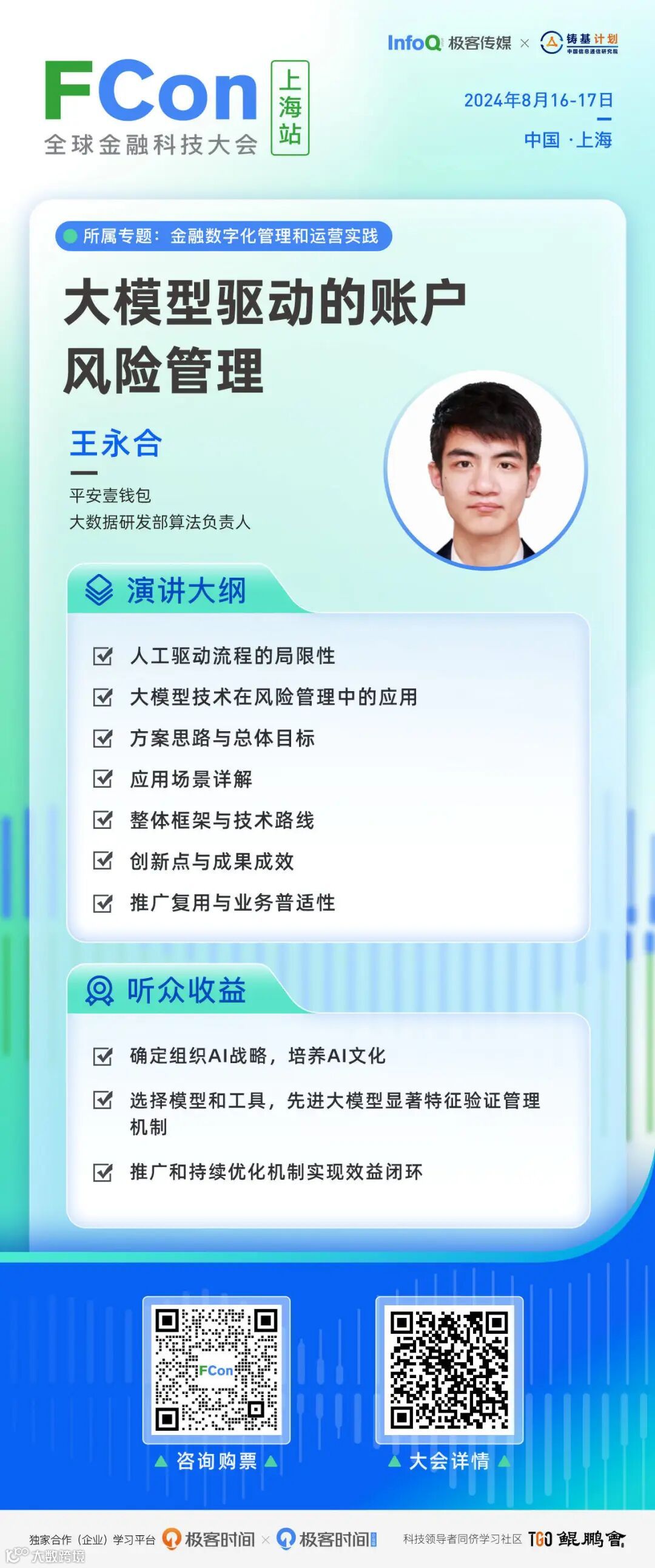 在即将于 8 月 16 日 -17 日举办的 FCon 全球金融科技大会上,平安壹钱包大数据研发部算法负责人王永合将深入探讨如何利用大模型技术,实现账户风险管理的数字化转型,以及这一转型如何为金融机构带来实质性的价值。