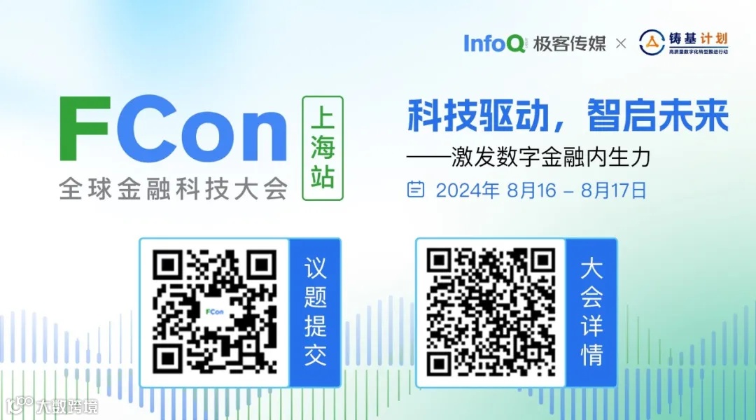 FCon 全球金融科技大会是极客邦科技旗下 InfoQ 中国团队推出的面向金融行业及金融科技领域高端技术管理者、技术专家的垂直行业大会。2024 年 FCon 由中国信通院“铸基计划”作为官方合作机构,以“科技驱动,智启未来——激发数字金融内生力”为主题,将聚焦金融行业在数智化时代从战略、组织、人才、数据到技术的全面革新,邀请国内外金融机构及金融科技公司专家分享实践经验与深入洞察。