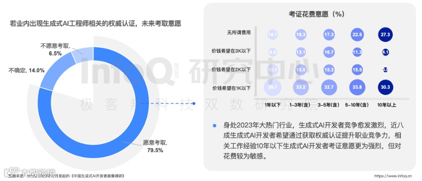 技能升级将成为趋势:对于那些刚入行的生成式 AI 开发者来说,未来的职业发展道路将会有更多选择。随着对专业技能认证的需求日益增长,获取权威机构颁发的证书将成为他们提升自我、迈向更高职业阶梯的重要途径。
