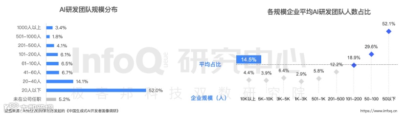 AI 技术的蓬勃发展,带来了对人才的极大渴求。在这场没有硝烟的战争中,AI 大模型、AIGC、芯片等领域的招聘需求飙升,博士生成为市场的宠儿,招聘需求增长率高达 430%。InfoQ 2023 年 12 月发起的《中国生成式 AI 开发者画像调研》显示,21.2% 的企业存在专业技术人员经验不足或人力欠缺现象,解决专业人才供应问题尤为紧迫。生成式 AI 开发者,无疑是职场上的香饽饽!
