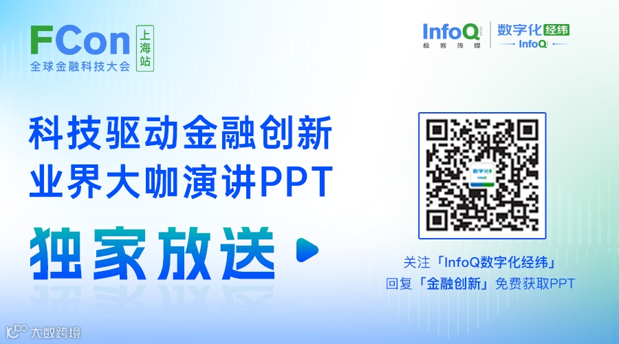 11月19日-20日在上海成功举办的首届 FCon 全球金融科技大会,以「科技 + 金融,激发创新力量」为主题,汇聚了来自金融龙头企业的数百名技术高管,掀起一场探讨新时代金融科技未来的高潮。经征得大会分享嘉宾同意,InfoQ 数字化经纬为您奉上精彩演讲 PPT!关注「InfoQ 数字化经纬」,回复「金融创新」即可获取 PPT,深度洞悉科技趋势,助您引领金融创新未来!