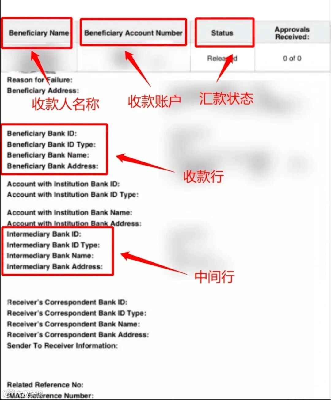 如果上述信息全部正确,但汇款迟迟不到账,则可以要求客户向银行索取MT103报文。你可以把MT103报文理解为快递单号,通过这个“单号”,你能查询到“快递”到底寄出了没有,什么时候寄出的,以及其他详细信息。
