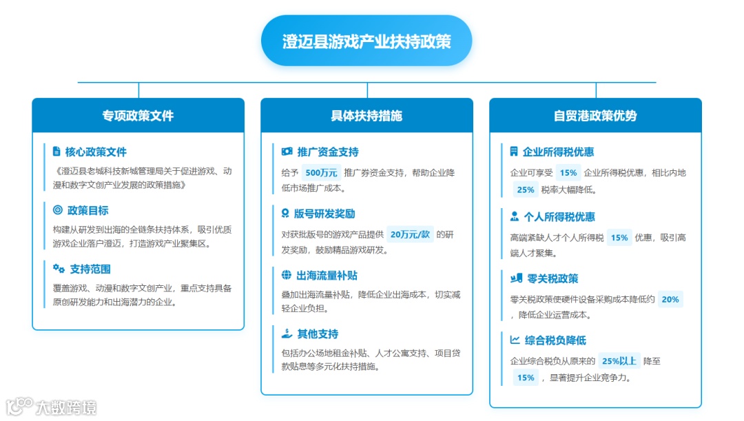 澄迈县为游戏出海众创空间提供了完善的政策支持体系。
