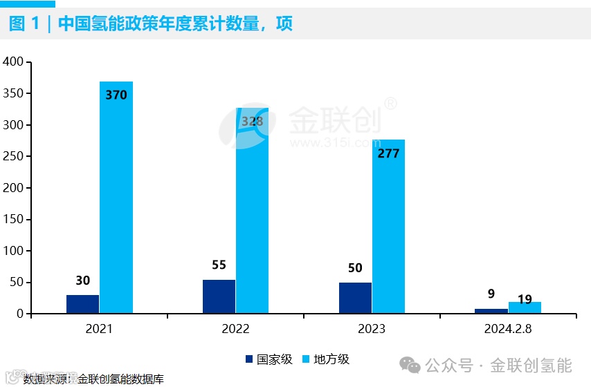 2024年1月1日-2024年2月8日,中国氢能政策累计发布28项。其中,国家级9项,地方级19项。