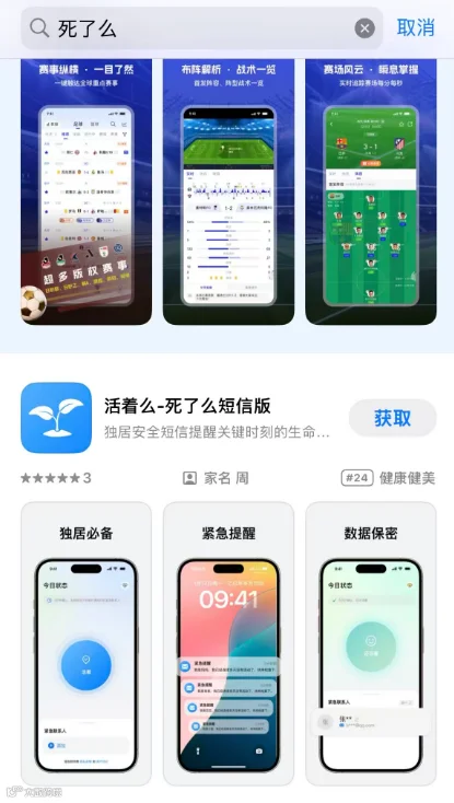 S姐的纯血鸿蒙6系统应用市场搜到的死了吗APP如下截图: