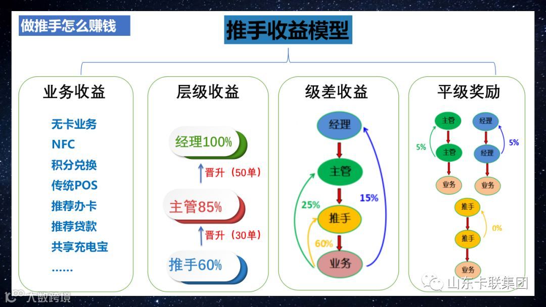 5、未来的发展是不同于实物销售一次性收益,支付产品的收益具有叠加性和永久性,对比传统行业创业,更具吸引力。