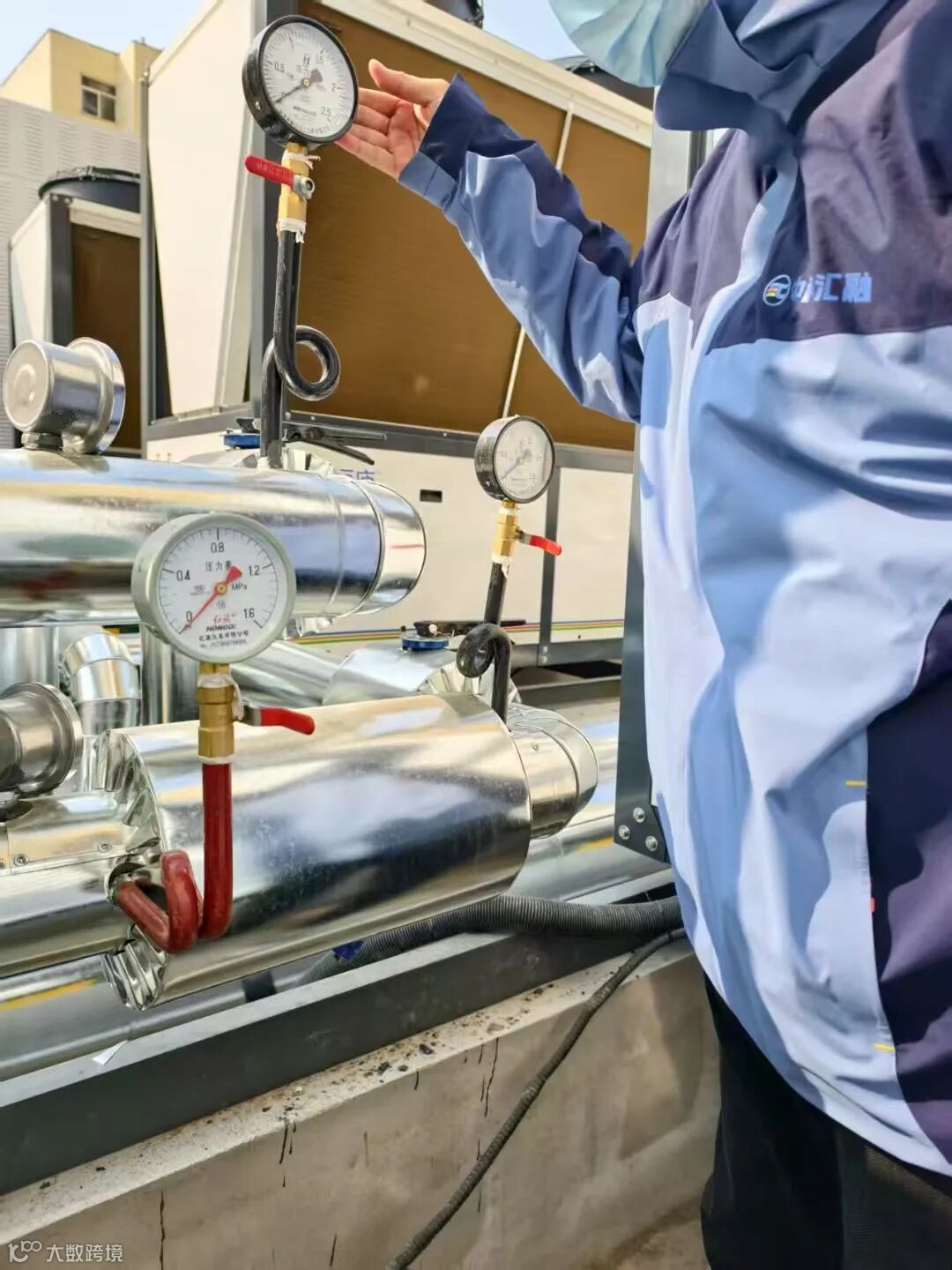 还记得踏入项目现场的那一刻,我瞬间被眼前的景象吸引。大型低温空气源设备整齐排列,在明媚的阳光下闪耀着金属光泽,它们高大而沉稳,就像忠诚的卫士守护着这片土地。一旁的换热站里,机器持续发出均匀而低沉的嗡嗡声,仿佛在诉说着能源转换的奇妙故事。错综复杂的管道相互交织,精密的仪器部件有序组合,每一处细节都彰显着科技与工程融合的魅力。同事们身着统一的工作服,熟练地操作着各类设备,他们的眼神专注而坚定。现场,指挥声、机器轰鸣声此起彼伏,共同交织成一曲充满活力与希望的建设交响乐。