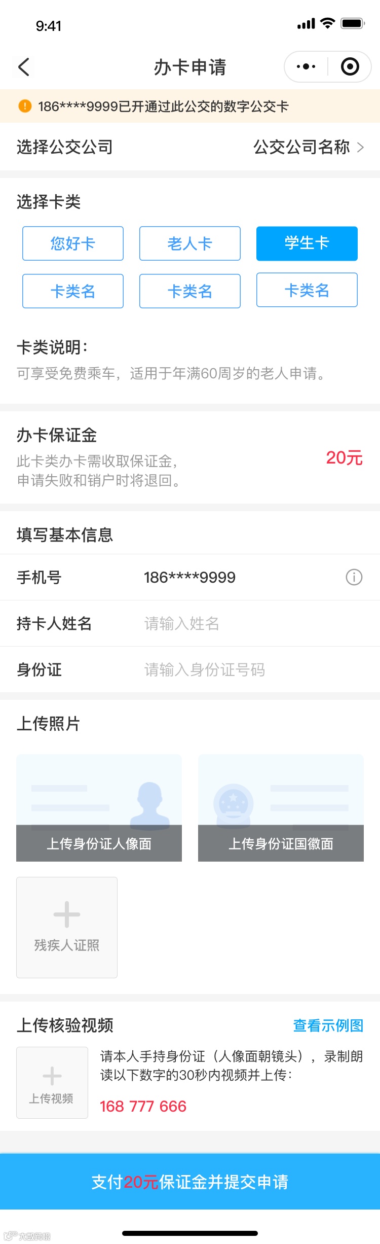选择公交公司和卡类,填写持卡人信息并提交申请材料。