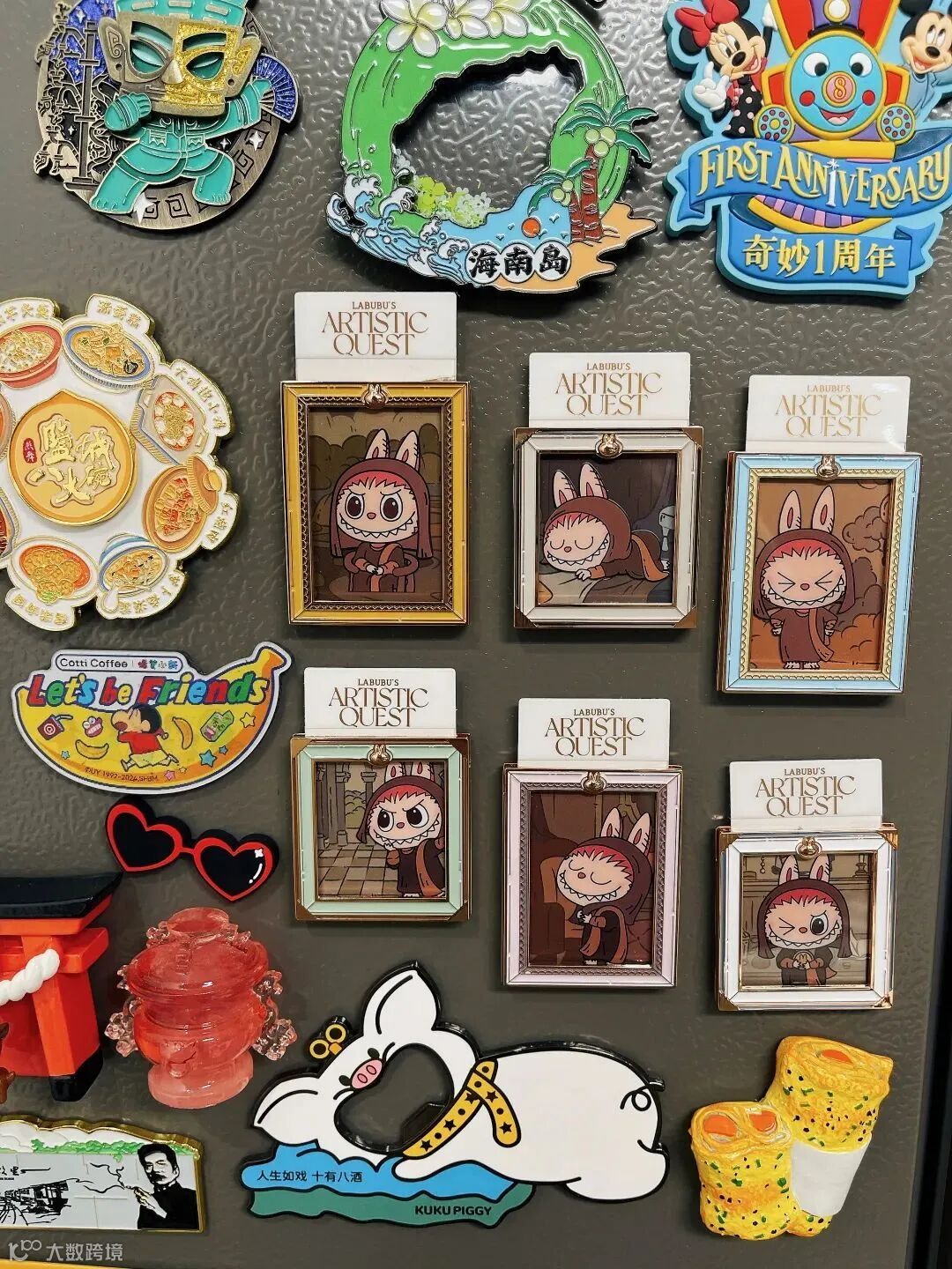 Labubu还与卢浮宫、可口可乐等IP联名,其“丑萌”形象被赋予了文化混搭的潮流属性。图图就收到过发小从法国带回来的Labubu卢浮宫联名款冰箱贴。