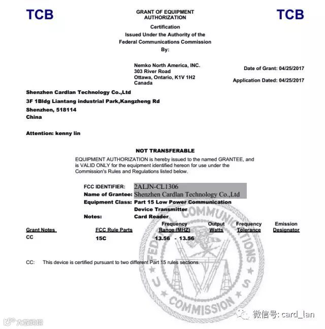 喜讯:深圳卡联科技CL1306公交刷卡机通过FCC认证!