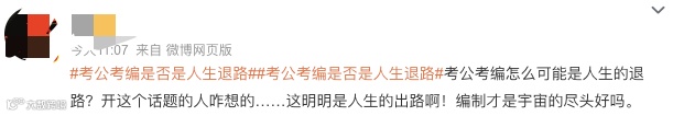 今天刷微博,在热搜榜上看到一个话题“考公考编是否是人生退路”。