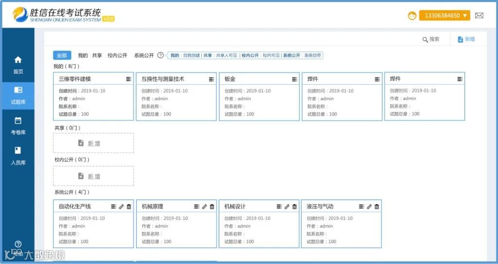 可建立自己私有课程题库、小组共享课程题库、校内共享课程题库、全网公开课程题等,课程开放程度可编辑,保密性好。