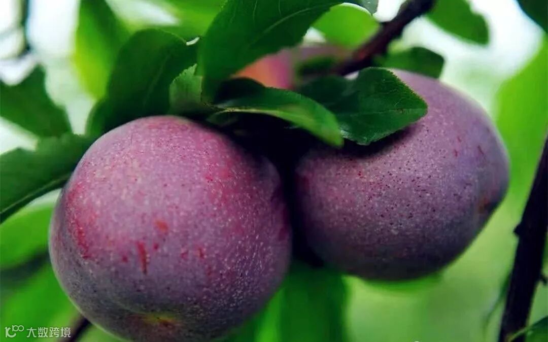 成熟的芙蓉李,紫红色的果皮外面包覆着一层薄薄的果粉——粉酶,能对果子起保驾护航作用。