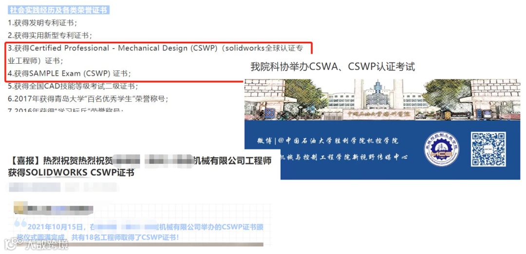 拥有CSWA证明您具备在SOLIDWORKS中创建基本模型和概念的基本知识和技能。在一些高校都已经开设了SOLIDWORKS课程,申请CSWA甚至已经成为这些具有CAD相关课程的大学生的强制要求,学生需通过SOLIDWORKS认证累积学分。