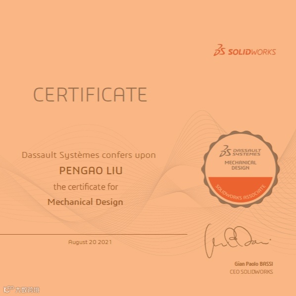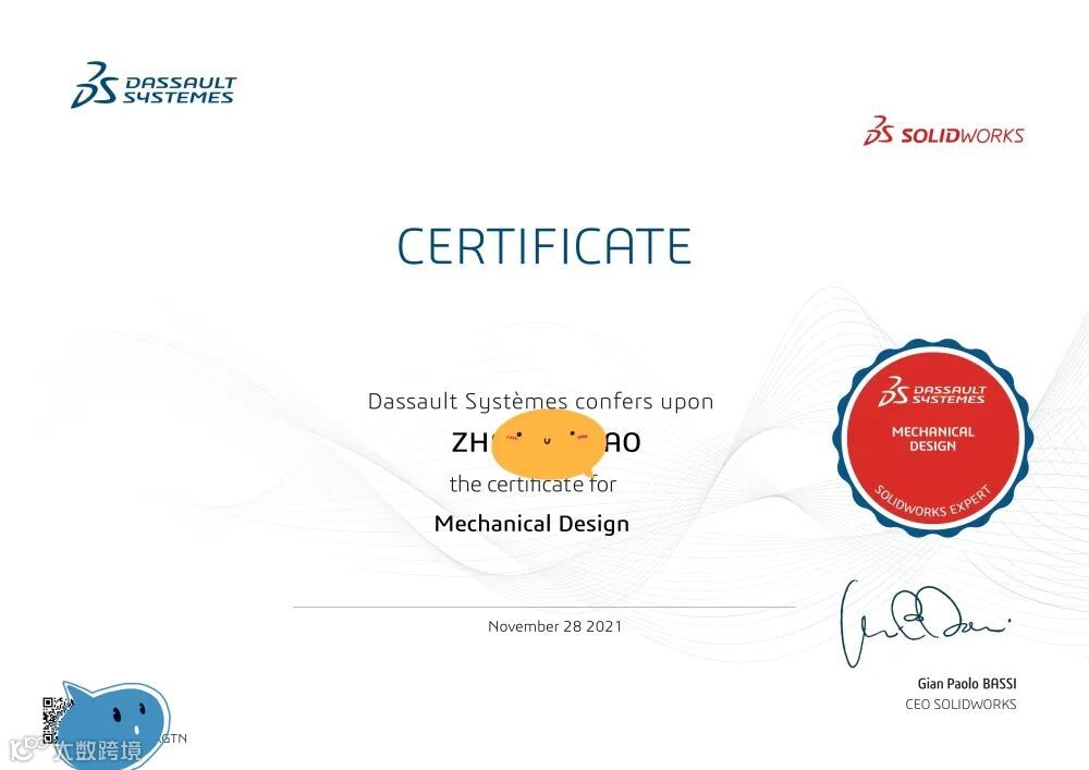 SOLIDWORKS认证证书可以证明您使用SOLIDWORKS软件平台的技能水平。您可以通过已获取的认证级别来准确地描述简历,而不是只在简历中简单说明您只是熟练使用SOLIDWORKS。此外,获得认证意味着您的名字将列入SOLIDWORKS认证名录供企业和个人参考录用,证书可在SOLIDWORKS官方认证中心网站查询,其资格全球认可。