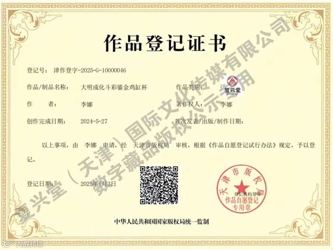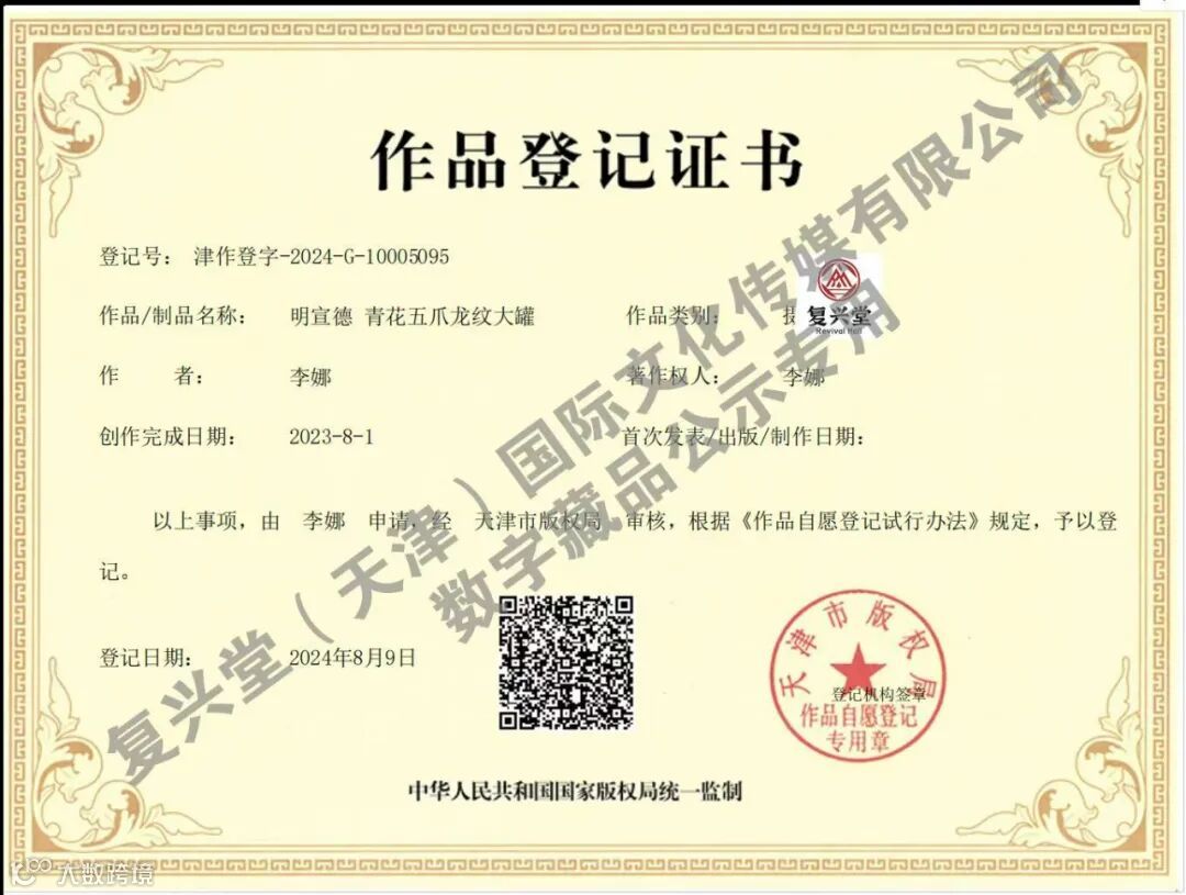 (备注:可通过“复兴堂艺术”公众号“数藏发行”—“津投数藏”,下载“津投数藏”APP或点击H5页面登陆购买)