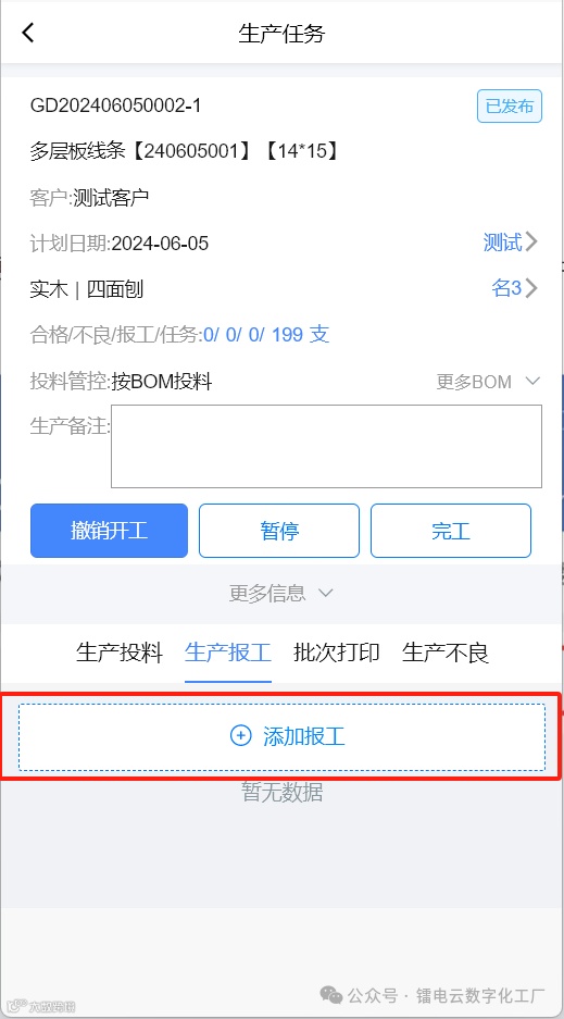 生产人员收到任务后,在任务详情页填写生产进度数据;
