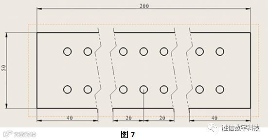 ➤由于长度200会发生变化,为了保证视图大小的不变,给断裂视图添加定位尺寸,如图7所标注: